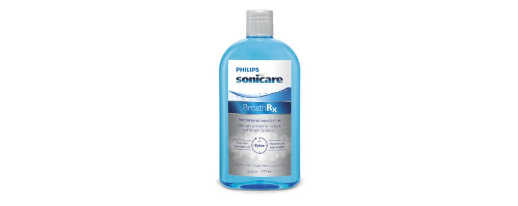 Philips Sonicare BreathRx Tongue Cleaner eliminates 99 percent of bad breath-causing germs. It’s designed to keep your breath fresh longer while also helping fight plaque and gum disease. Unlike many mouthwashes available in grocery stores, BreathRx is alcohol-free, so it has all the breath and oral hygiene benefits without drying out your mouth and leaving it vulnerable to new bacterial growth.